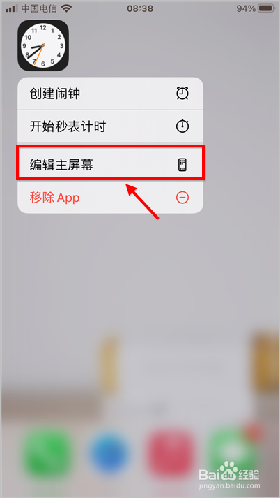 选择肆意一条目app,长按进入编纂模式。