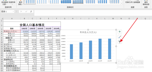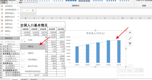 点击线性。可以看到右边的图表上显示出数据的趋向。