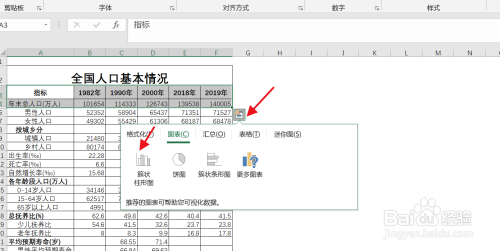 点击“快速阐发”图表。点击“图表”-“簇状柱形图”。