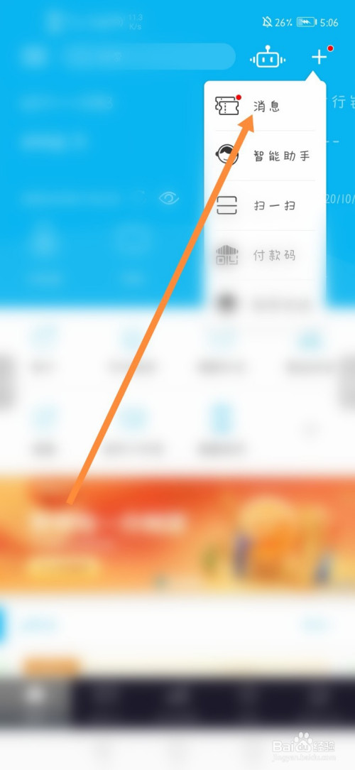 首先打开建行APP,点击右上角的加号。