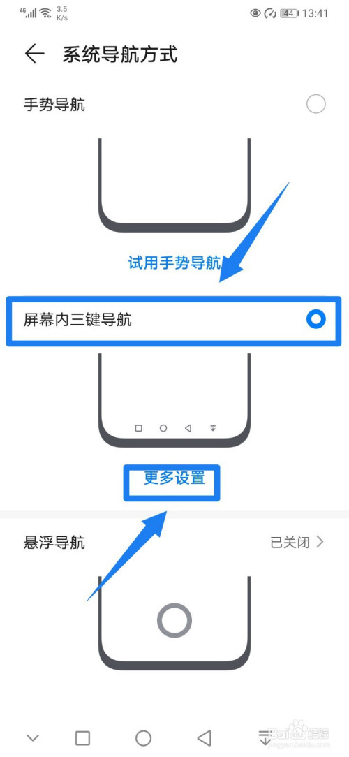 选择最后两个导航键格局,然后点击屏幕右下方的箭头图标即可下拉通知栏