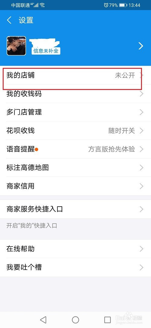 第三步进去设置界面之后,点击我的店肆