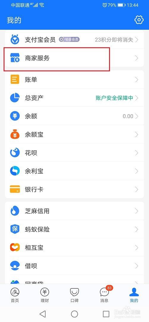第一步打开支付宝,进去我的界面,点击商家办事