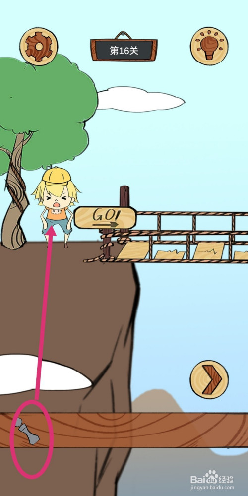 点击按钮【GO】,游戏本家儿角就会顺遂跳到对岸了,游戏过关。