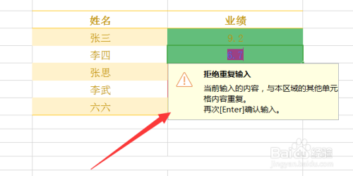 当您在表格中录入反复的时辰系统会提醒您内容反复。