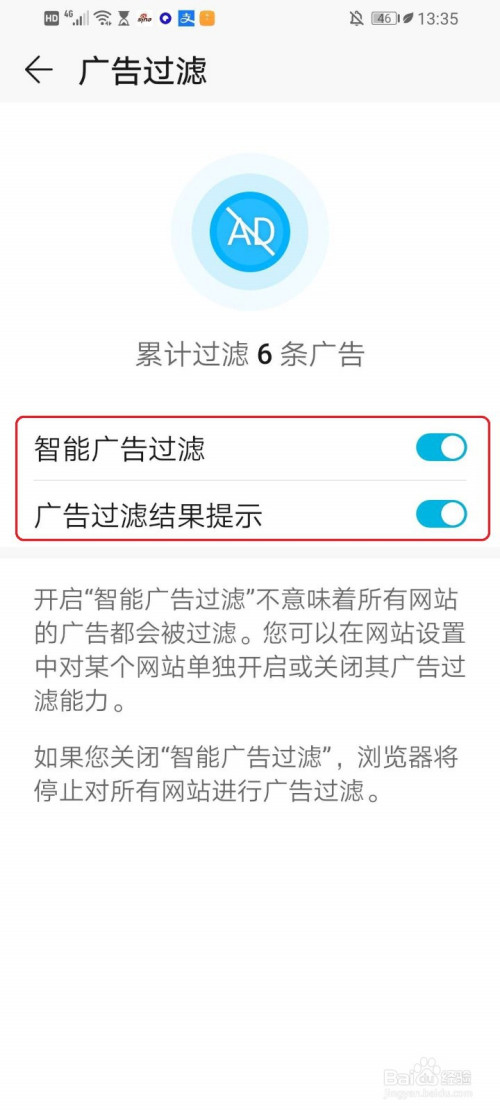 依次打开“智能告白过滤”和“告白过滤成果提醒”这两个选项。
