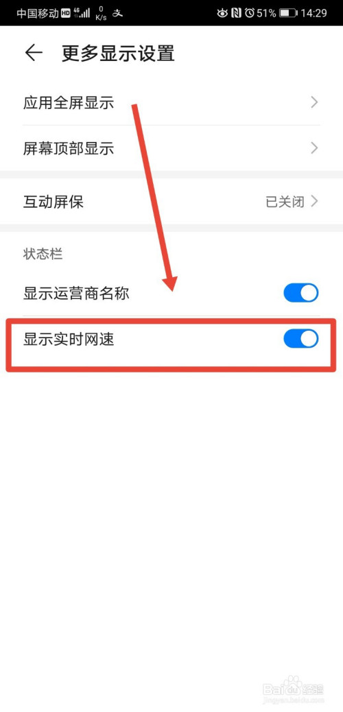 进入到更多显示设置页面后,即可看到该页面下的显示及时网速功能,已经开启;