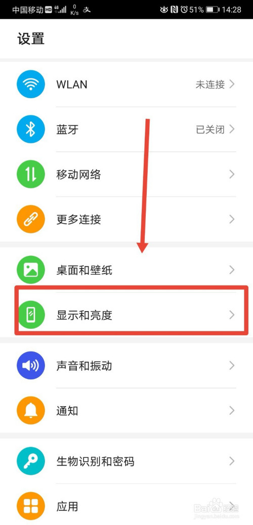 在设置页面,点击进入显示和亮度功能;