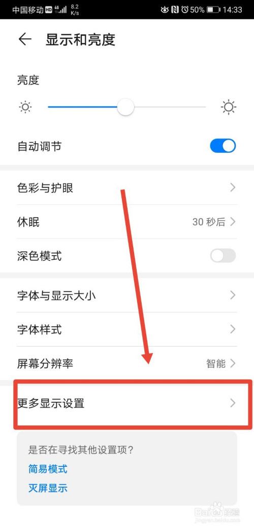 然后在点击进入显示和亮度页面下的更多显示设置功能;