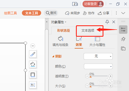 然后,选中文本框,并点击右侧“对象属性”按钮。如图: