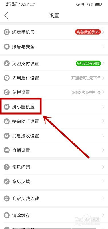 4.点击“拼小圈设置”;