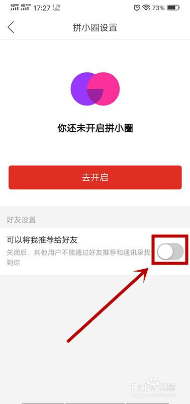 6.“可以将我保举给老友”右侧的按钮由绿色变为灰色,封闭当作功。