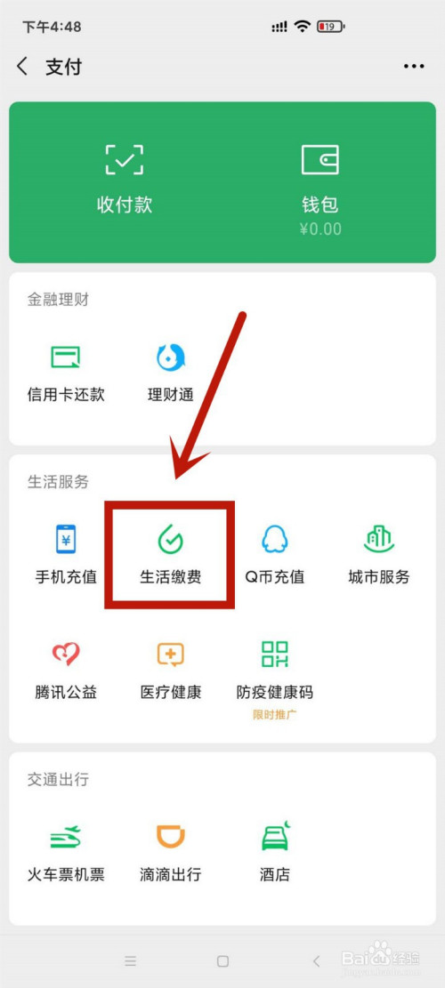 找到糊口办事下的糊口缴费选项并点击进入。