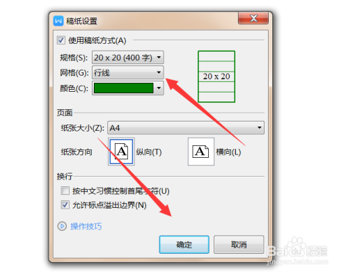 在稿纸设置弹出的对话框设置稿纸的格局。