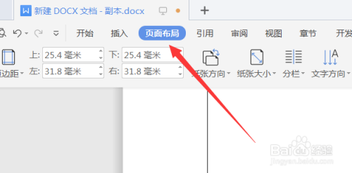 打开Word文档,点击菜单栏的页面结构选项卡。