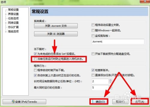 点击【当有使命运行时防止电脑进入待机状况】选项,去失落勾选后,点击界面右下角的【应用】或者【确定】让设置生效即可