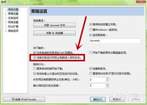 在右侧窗口,【当下载时】选项组下,【当有使命运行时防止电脑进入待机状况】选项已经被勾选
