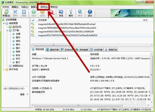 打开比特精灵来到本家儿界面,点击【选项】选项卡
