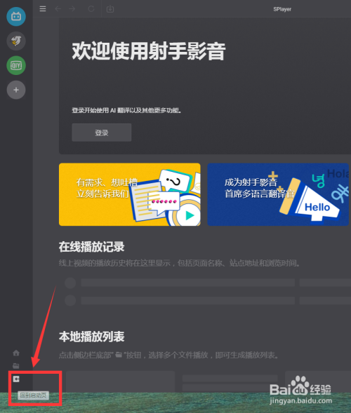 4.这时若想退回到启动页,点击左侧的(回到启动页)。