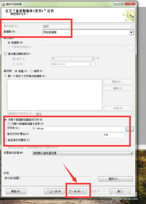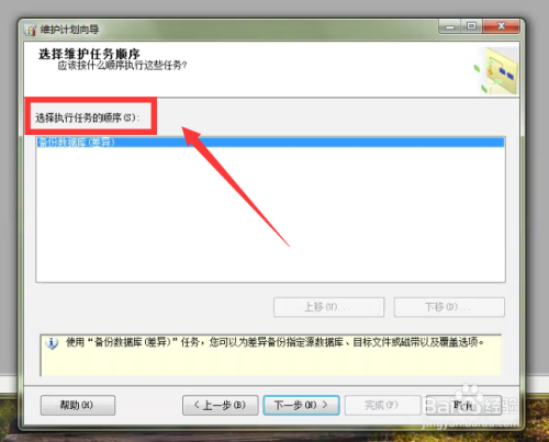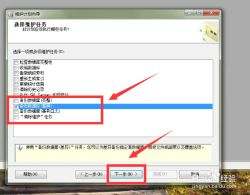 然后勾选维护打算类型,这里勾选“备份数据库(差别)”,点击“下一步”。