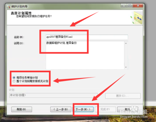 输入自界说打算名称与申明。勾选“每项使命零丁打算”。点击“下一步”。