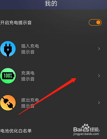 开启后,点击布满电提醒音。