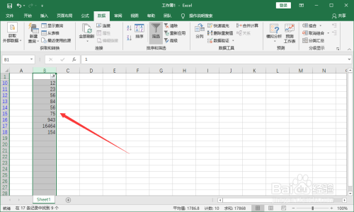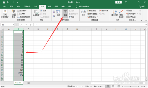 选中数据列,点击菜单栏【数据】-【筛选】。