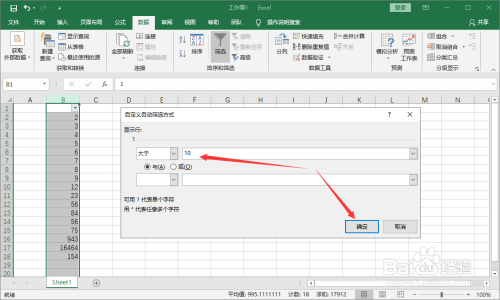 然后我们就能看到所有大于10的数据都被筛选出来了。