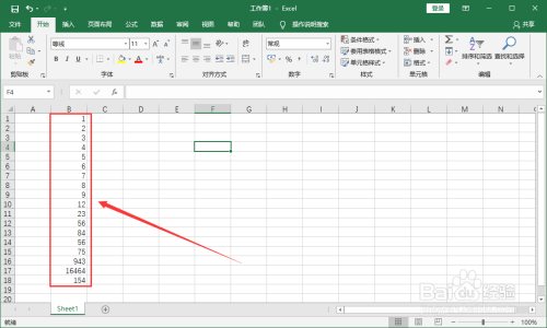 在某一列中输入一组大小纷歧的数字。
