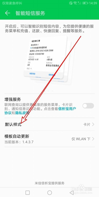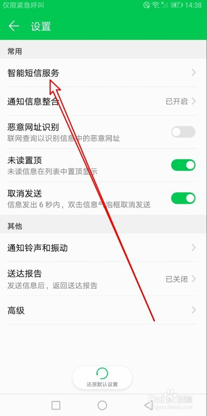 接下来在打开的页面中点击智能短信办事的设置项。