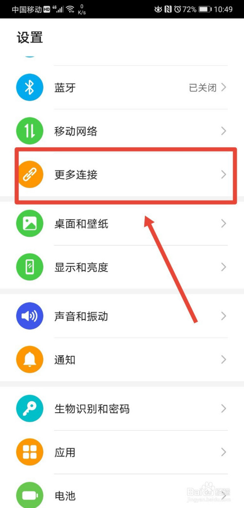 然后在点击进入设置页面下的更多毗连功能;