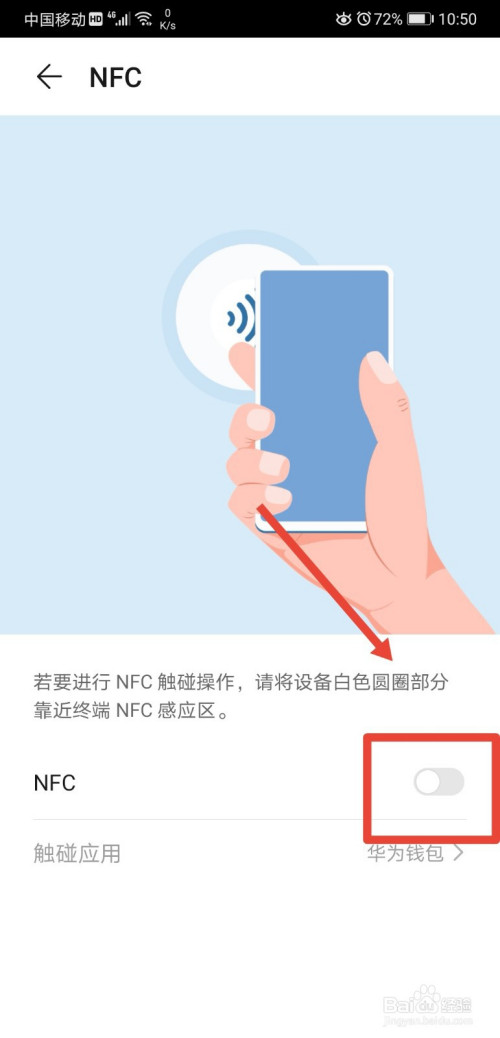 进入到NFC页面后,我们可以看到NFC的功能为触碰感应,即会感应身份证、银行卡等证件,而且该功能是开启状况的;