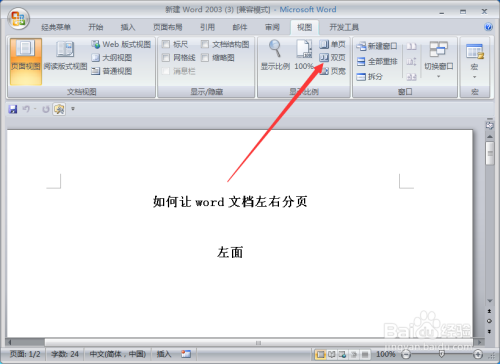 点击菜单栏“双页”,如图所示: