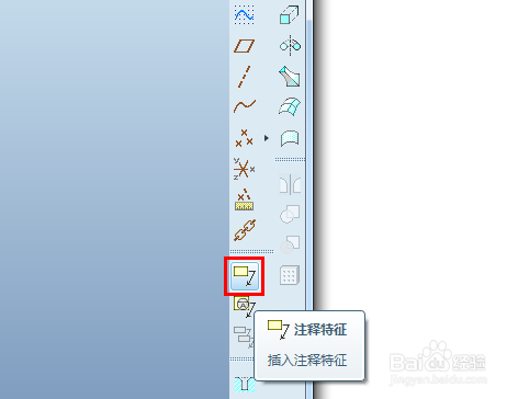 proe界面右侧点击图标,启动注释特征的建立。