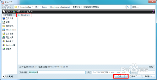 启动proe,点击打开文件图标,打开现有的proe三维模子。