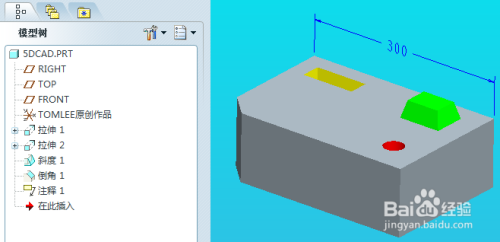 经由过程以上步调,我们就将一个尺寸经由过程注释特征的体例,添加到了三维模子上。