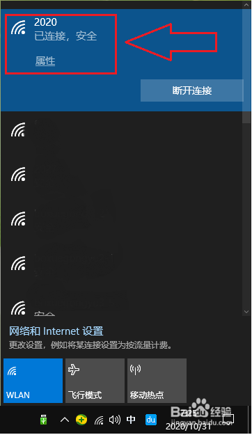 打开win10电脑的wifi列表,找到名称“2020”,然后输入设置的密码,成果如下所示。