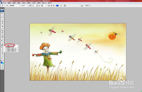 在东西箱中选择横排文字东西,输入文字。如下图所示