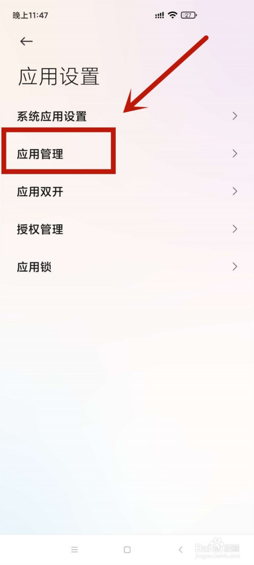 1.打开手机设置,点击应该设置进入应用办理。