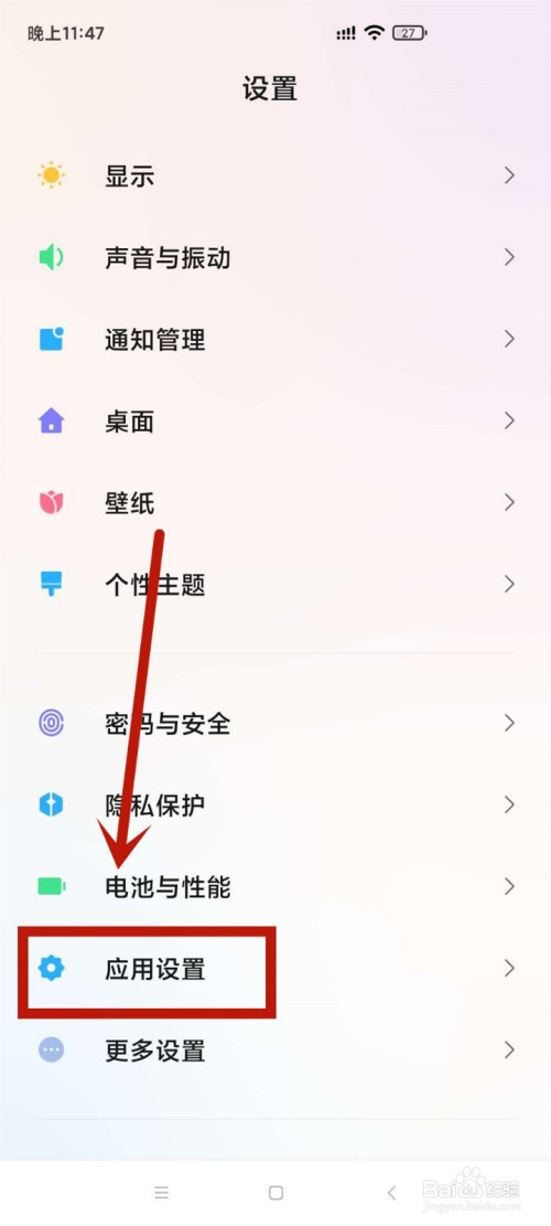 在设置页面,点击进入应用设置选项。