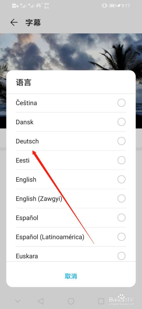 当作功设置字幕说话为Deutsch