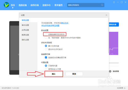 点击【常规设置】,打消勾选“启动设置”下面的【设备毗连时主动启动】。