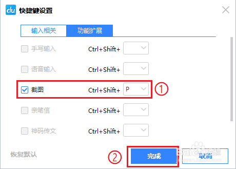 ● 点击右侧的字母选框,自界说快捷键,例如“ctrl+shift+p”;