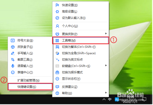右键点击使命栏上的“百度输入法图标”。