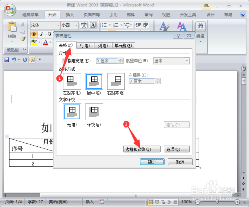 在表格属性左上方点击【表格】,右下方点击【边框和底纹】