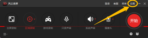在“风云录屏”本家儿界面中,点击上方的“设置”按钮。