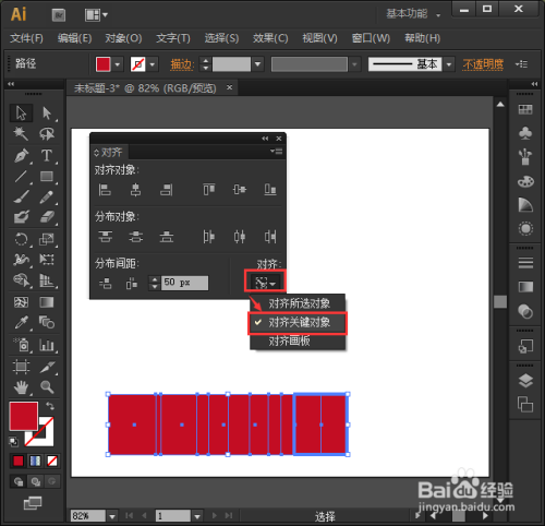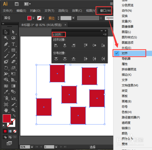 我们把所有的图形一路选中,点击【窗口】-【对齐】打开对齐面板,如图所示。