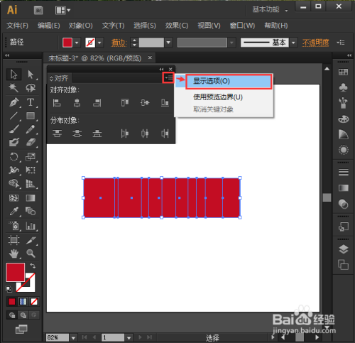 接着,我们点击对齐面板右边的【显示选项】,如图所示。