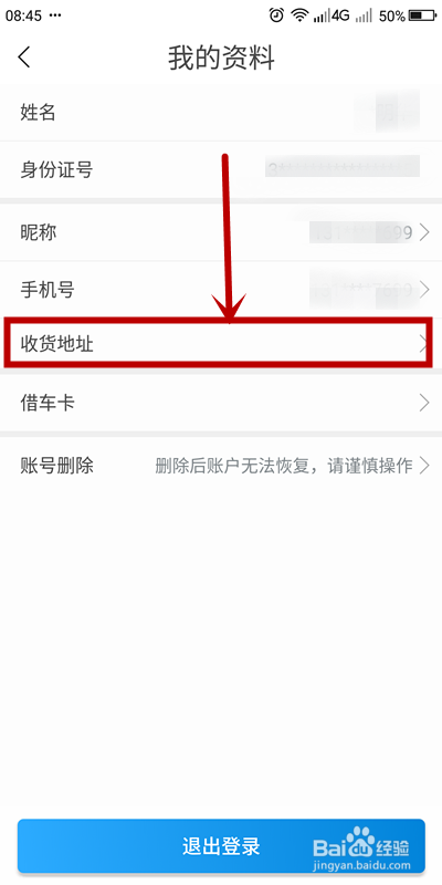 进入【我的资料】页面后,找到【收货地址】选项点击