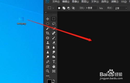 打开ps东西后,将图片拖入到ps处置界面里。